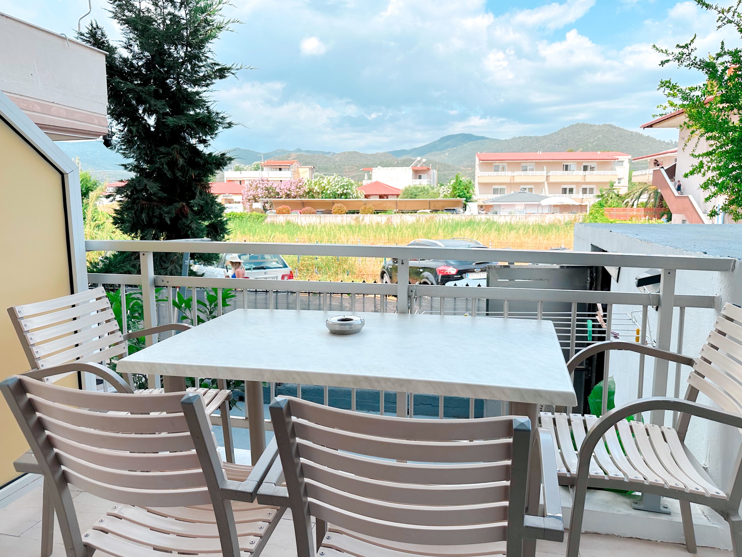 Included TV, WiFi, Air Condition, Kitchen with Refrigerator and Electric Stove, Hot Water, Parking, Balcony with Table and Chairs.